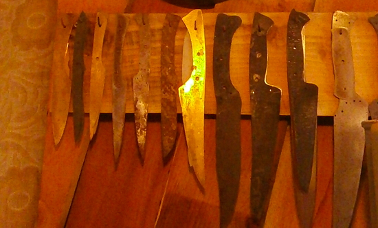 L’autre élément, suite à une demande singulière de la part de BV à BV, celle de composer pour l’occasion une chanson. J’ai écrit des chansons, par le passé, dont le ton et la forme sonnaient justement avec ce genre de récit, des histoires de ruisseaux, d’hirondelles (elles ont le ventre blanc) ou de martinets (ils sont noirs faucille), d’amours déçues et d’aulx. Benoît les a entendues. J’ai donc écrit Le couteau, car c’est bel et bien le cœur du récit, sur la base d’un morceau que j’avais abandonné (vous savez qu’on écrit des choses, et puis elles ne tiennent pas dans le temps, trop fragiles, ou vous changez, et elles s’étiolent et meurent, petits ombilics racornis à vue d’œil).