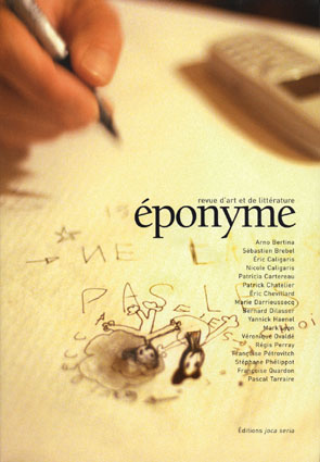 Eponyme se présente au public au Lieu Unique, à Nantes, le jeudi 29 septembre à 20 h, en présence de Eric Pessan, Bernard Martin (des éditions Joca Seria), et Nicole Caligaris.