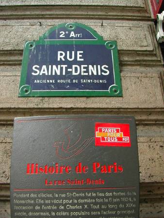 Premier et deuxième arrondissement : la rue Saint-Denis est elle-même un lieu de passants. En travaux actuellement, il y a plus de marcheurs que d’automobiles. Les passages s’y succèdent, une activité intense s’y déploie puisque l’on aborde déjà les frontières du Sentier : c’est le règne du vêtement, et le déshabillé s’y offre sans fausse pudeur.