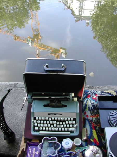 Après la mort de son propriétaire, la machine à écrire fut mise en vente par le fils, lors d’une brocante qui se déroula le dimanche 2 juillet 2006, le long du canal Saint-Martin à Paris (10e). Le temps était au bleu et jaune, certains prétendaient même que la canicule était de retour. On prenait un semblant de frais au bord de l’eau verte.