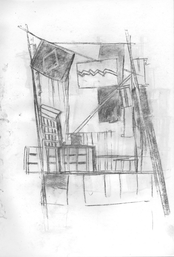 J’ai dessiné mon bureau, ou plutôt mes deux bureaux, mes refuges, mes ateliers temporaires. On a pris l’habitude avec les enfants de les appeler cabanes.