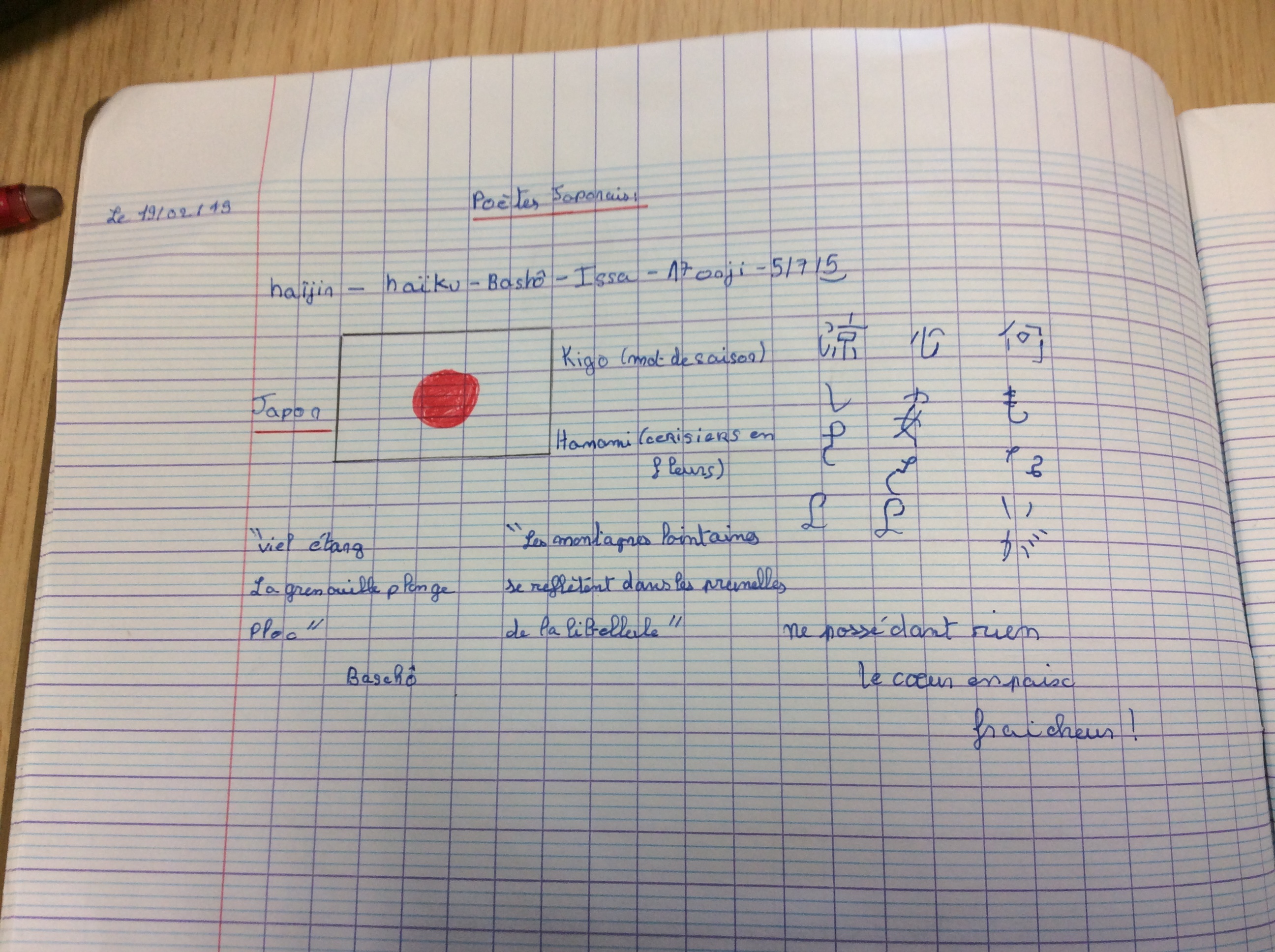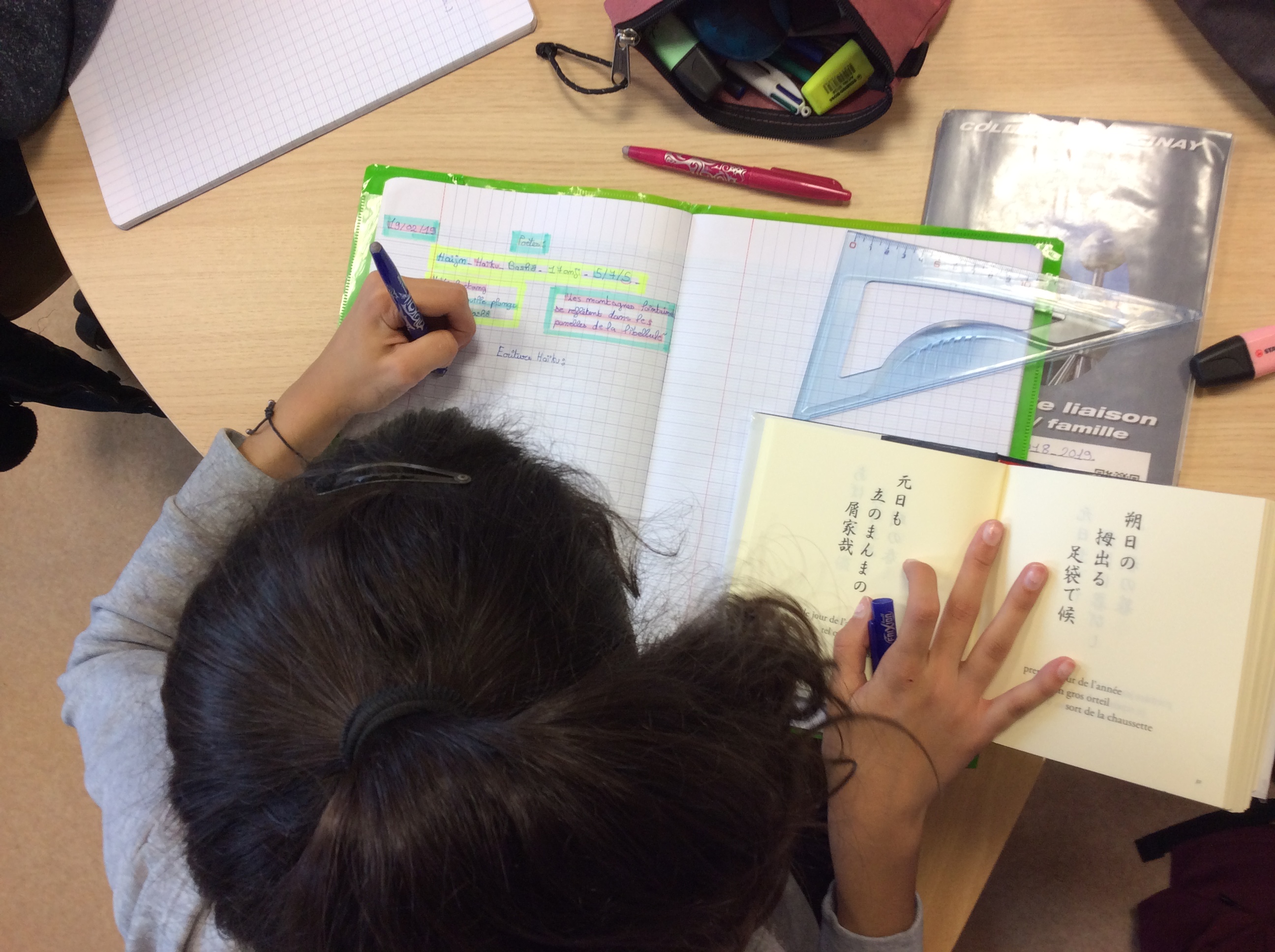 J’ai mené plusieurs ateliers avec la classe de 6e de M. Stintzy autour du haïku et du haïga.