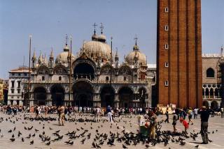 Façade : C’est pourquoi, écrit Michel Butor, « La façade doit donc être étudiée non point comme un mur de séparation, mais comme un organe de communication entre la basilique et sa place, une sorte de filtre fonctionnant dans les deux sens, et que le vestibule complétera. Déjà la place est un espace fermé, avec ses pores tout autour, mais une seule grande fenêtre, celle qui donne sur l’ouverture du Grand Canal. La façade de la basilique va émettre des avant-postes pour bien marquer la continuité. » (page 15). Voyage obligé, les jeunes ou moins jeunes mariés vont jusqu’à Venise. C’est la sanctification officielle de l’union conjugale, la bénédiction par la ville elle-même, ses églises, ses canaux, ses rues étroites, ses restaurants, ses chansons... du couple qui se conforme à une sorte de daguerréotype sépia par lequel il faut passer : comme Rimbaud se faisant photographier par Carjat, il est d’usage de se faire tirer le portrait devant le Pont des Soupirs ou, sur la place Saint-Marc, attablés au café Florian. Ceux qui viennent pour leur voyage de noces, ceux qui viennent pour