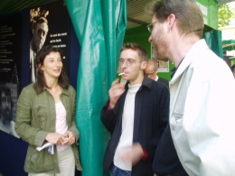 ![]() ![]() au marché de la poésie, le 30 juin 2004, Albane Gellé retrouve Yann Dissez et Jean-Jacques Le Roux (cliché numérique F Bon) |