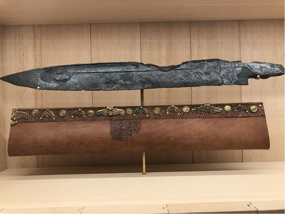 Les fragments de métal retrouvés dans une tombe vieille de onze siècles ont connu des jours meilleurs, il faut un peu d’imagination pour leur inventer une forme qui fasse honneur aux guerriers qui ont porté ces armes. C’est là qu’intervient le récit : à partir de ces pauvres restes, de ces morceaux abîmés, rouillés, rongés par le sel et le temps, il nous permet d’en comprendre la valeur. Le récit qui met en scène les Vikings débarquant sur leurs drakkars n’est pas en reste de fiction : le mot « drakkar » lui-même est une invention française, datant du XIXe siècle, pour désigner les vaisseaux caractéristiques des Vikings. Il aurait été formé à partir du vieux scandinave médiéval dreki = dragon (la proue des vaisseaux vikings était ornée d’une figure animale, souvent un dragon), pluriel drekar, auquel on aurait ajouté un k pour rendre plus exotique le néologisme.