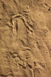 une lampe une couverture des biscuits secs aussi au retour c’est revenir qui change (c’est revenir d’où revenir) par où attraper revenir des choses (le pays vu) les sacs de couchage sur le balcon sable sur le carrelage et l’autre le roux l’ocre emporté dans les sacs en plastique