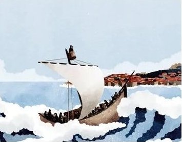 Il y a du beau (et du moins beau) monde à bord de la Fortunera, en ce moyen âge tardif où les croisés, tout feu, tout flamme, ne tiennent pas en place. Ils sont évidemment du voyage. Ils partent, disent-ils, délivrer Jérusalem. Avec eux, outre les marins qui s’échinent à la manœuvre, se trouvent des marchands, mal en point à cause d’une mer agitée qui les force à se pencher, goules grandes ouvertes, sur les rambardes.