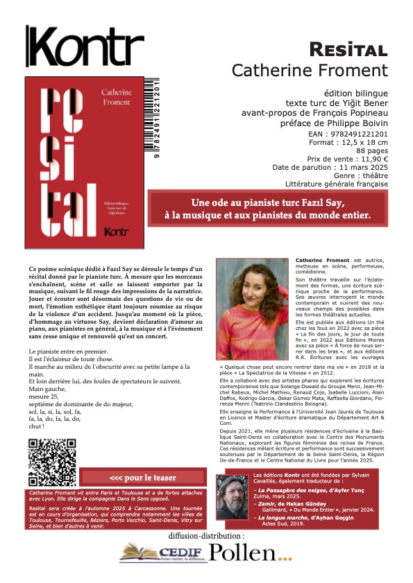 Ce poème scénique dédié à Fazıl Say se déroule le temps d’un récital donné par le pianiste turc. À mesure que les morceaux s’enchaînent, scène et salle se laissent emporter par la musique, suivant le fil rouge des impressions de la narratrice. Jouer et écouter sont désormais des questions de vie ou de mort, l’émotion esthétique étant toujours soumise au risque de la violence d’un accident. Jusqu’au moment où la pièce, d’hommage au virtuose Say, devient déclaration d’amour au piano, aux pianistes en général, à la musique et à l’événement sans cesse unique et renouvelé qu’est un concert.