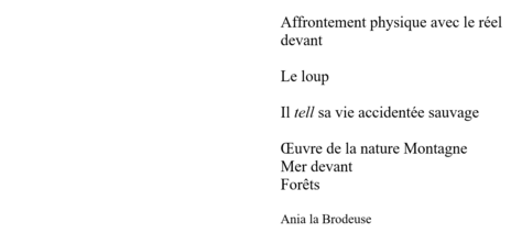 Pas vil loup, loup noble, de haut lignage. Ania écrit dans des poches, des enclaves, de caches en caches.
