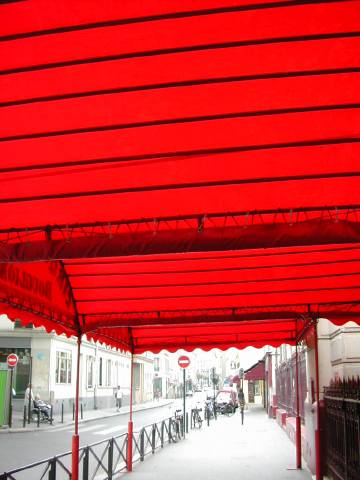 Le bâtiment en rotonde du Cirque d’Hiver Bouglione, 110 rue Amelot, Paris (11e) attend son prochain spectacle, le 22 octobre : mais le paraphe de la fête est encore installé sur le trottoir, comme une sorte de ciel de lit...