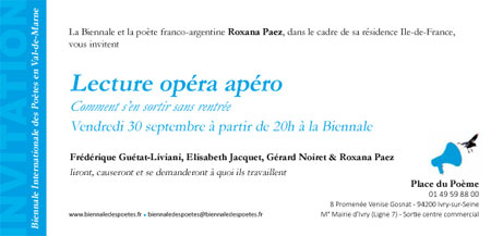 La Biennale et la poète franco-argentine Roxana Paez, dans le cadre de sa résidence Ile-de-France, invitent :