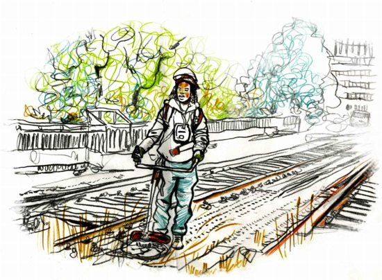 Damien Roudeau, né en 1981, est auteur de reportages graphiques ou en bande dessinée. Diplômé de l’école Estienne, il édite depuis 2005 carnets de voyage et reportages, privilégiant les sujets au long cours, dans des univers présumés autarciques (tribus électroniques, communautés Emmaüs, groupes de sans-logis...). Après avoir participé (2003-2012) à l’aventure des Yeux dans le monde, Damien a intégré en janvier 2013 le collectif de documentaristes Argos, qui compte des photographes, des rédacteurs... et désormais un dessinateur.