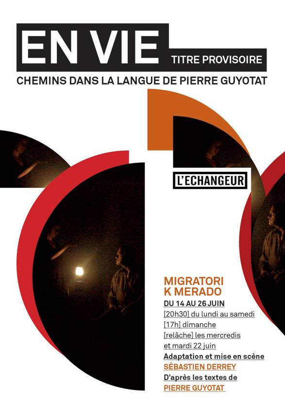 « Il s’agit d’inviter à un cheminement dans l’œuvre de Pierre Guyotat. Au centre de ce projet il y a le verbe de Progénitures, livre de voix écrit en versets, où la langue française se trouve ressourcée, réveillée, re-rythmée, réaccentuée. Pétrie entre autres par les patois, les parlers immigrés, les classiques, la langue se recharge de mémoire et déploie ses couches géologiques. Son histoire troublée. Un cœur furieusement vivant bat à l’intérieur du ventre de la mère patrie. On se trouve obligé de retourner à l’enfance. Aller à l’aveuglette, bégayer. Réapprendre à lire, à écouter. Revenir à un début de la parole, de l’écriture. Guyotat invente la figure du putain, esclave absolu, sans statut ni état d’être. Mais pourvu du verbe le plus libre. La langue se fait chant, épopée. Devant l’énormité et la fureur du monde, des fils se rêvent avant la naissance de leur père, une caissière de bordel accompagne clients et putains, prophétise. Le monde est marqué à jamais par la douleur de l’esclavage et la séparation des espèces : fil rouge de l’Histoire nourrie de la violence de l’homme et de ses peurs. C’est un parcours libre où la langue archaïque de Progénitures est mise en rapport avec d’autres textes (des extraits de l’œuvre récente de Guyotat et parfois de Buffon ou Montesquieu), qui sont là en contrepoint. »
