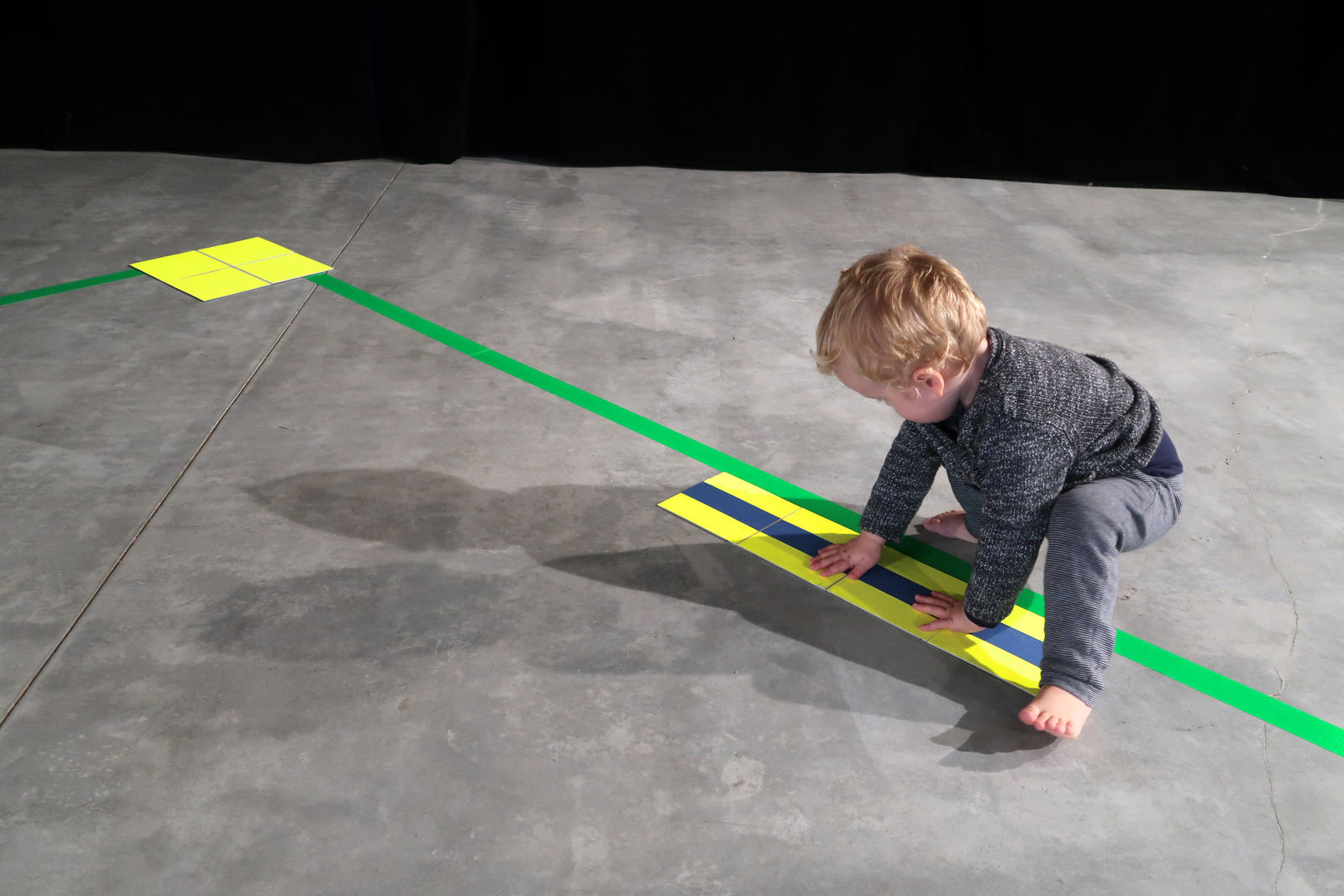 Le langage graphique du projet « Langage et espace » est utilisé comme signalétique pour proposer un cheminement du hall d’entrée de Little Villette à la salle de restitution de la résidence, traversant le cabinet de curiosités qui donne à voir les livres des Trois Ourses.