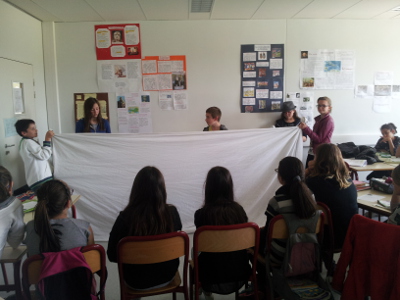 Jolie rencontre avec la classe de 4e3, qui n’en finit pas de me poser des questions, refusant de me laisser partir, et empêchant ce faisant la poursuite du cours. « C’est une stratégie, dit en riant leur professeure, Céline Morales. Mais pas que… », ajoute-t-elle.