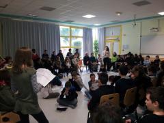 Dans le cadre de la journée nationale des écritures théâtrales jeunesse, j’ai composé une brigade de lecteurs, tous élèves du collège, et nous passons dans les classes pour lire deux courtes pièces : Et nous encore d’avantage, pièce inédite de Nathalie Papin, et Dans le monde, pièce inédite de Claudine Galéa.