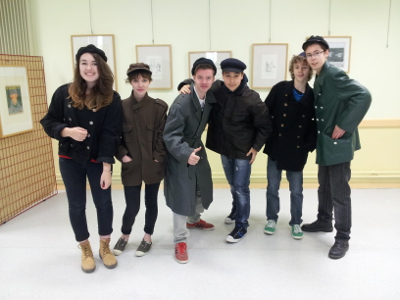 Vernissage de l’exposition Gus Bofa. Il y a du monde dans la salle multimédia. De nombreux élèves sont venus, ainsi que quelques invités extérieurs. Madame Delattre, Principale, présente Madame Grosos, nièce de l’artiste, qui nous parle un peu de cet oncle "qu’on voyait toujours avec une feuille et un crayon à la main..." La lecture des textes de l’artiste par des élèves de 3e4 est d’une belle intensité. Leur entrée dans la salle, au ralenti, et sur un charriot à roulettes qui devient une sorte de véhicule militaire, transforme ces élèves en soldats fantomatiques, et c’est très beau, très théâtral. L’émotion est palpable dans la salle, partagée par les adolescents et les adultes. Je suis vraiment content de ce travail, de la motivation des lecteurs et de cette rencontre avec l’œuvre de Gus Bofa, que je ne connaissais pas. Bravo à Aurore, Lucie, Eliott, Antoine, Paco et Antonin, qui se sont appropriés avec une belle réussite les mots d’un artiste hors pair. Assurément, un des moments les plus forts de ma résidence.
