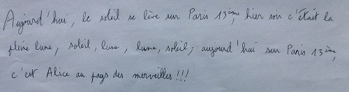 Aujourd’hui, le soleil se lève sur PARIS 13ème, hier soir c’était la pleine lune, soleil, lune ; lune, soleil ; aujourd’hui sur PARIS 13ème, c’est Alice au pays des merveilles !!!