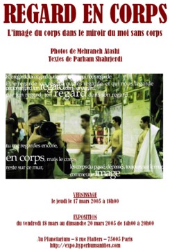 L’exposition Regard en Corps met en scène des photos de Mehraneh Atashi (Iran), accompagnées de textes de Parham Shahrjerdi (créateur des sites Blanchot, Derrida, Artaud).