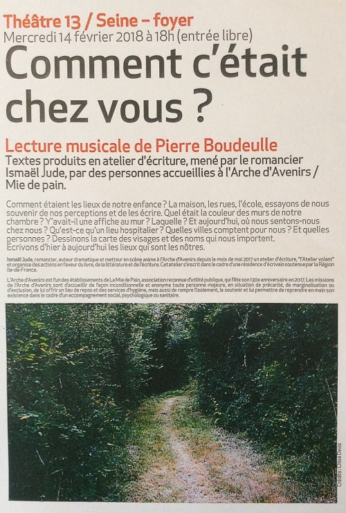 Lecture de textes produits en atelier d’écriture. Lecture par Pierre Boudeulle