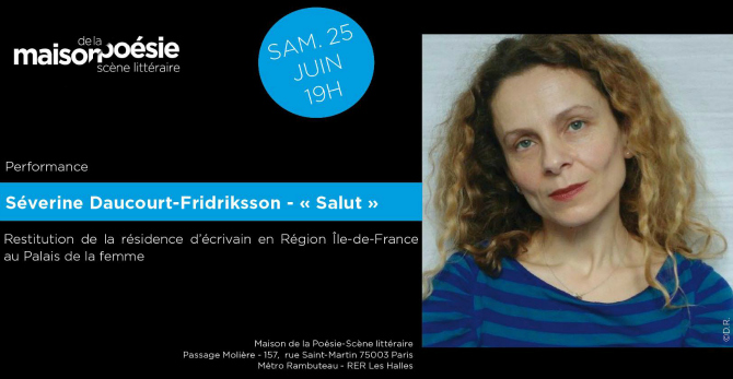 Entre théâtre, lecture et chanson, Séverine Daucourt-Fridriksson proposera plusieurs versions écrites de l’enfermement, la sienne et celle des participants à l’atelier d’écriture qu’elle a animé au Palais de la Femme durant 10 mois. Les axes explorés en atelier nourriront cette performance partagée : la langue comme espace de liberté, sa plasticité, ses formes infinies, le texte aux prises avec la voix et le corps, l’oralité, les accords-désaccords de la grammaire et les questions de genre dans l’identité, la banalité, l’enfermement et... la mer.