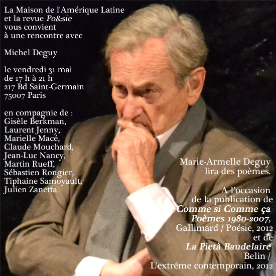 Michel Deguy / Maison de l’Amérique Latine – vendredi 31 mai 17 heures/ 21 heures