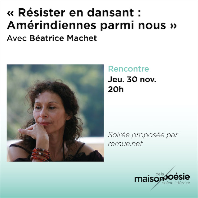 rencontre remue.net : Béatrice Machet, "Résister en dansant : Amérindiennes parmi nous", à la Maison de la poésie, jeudi 30 novembre, 20h