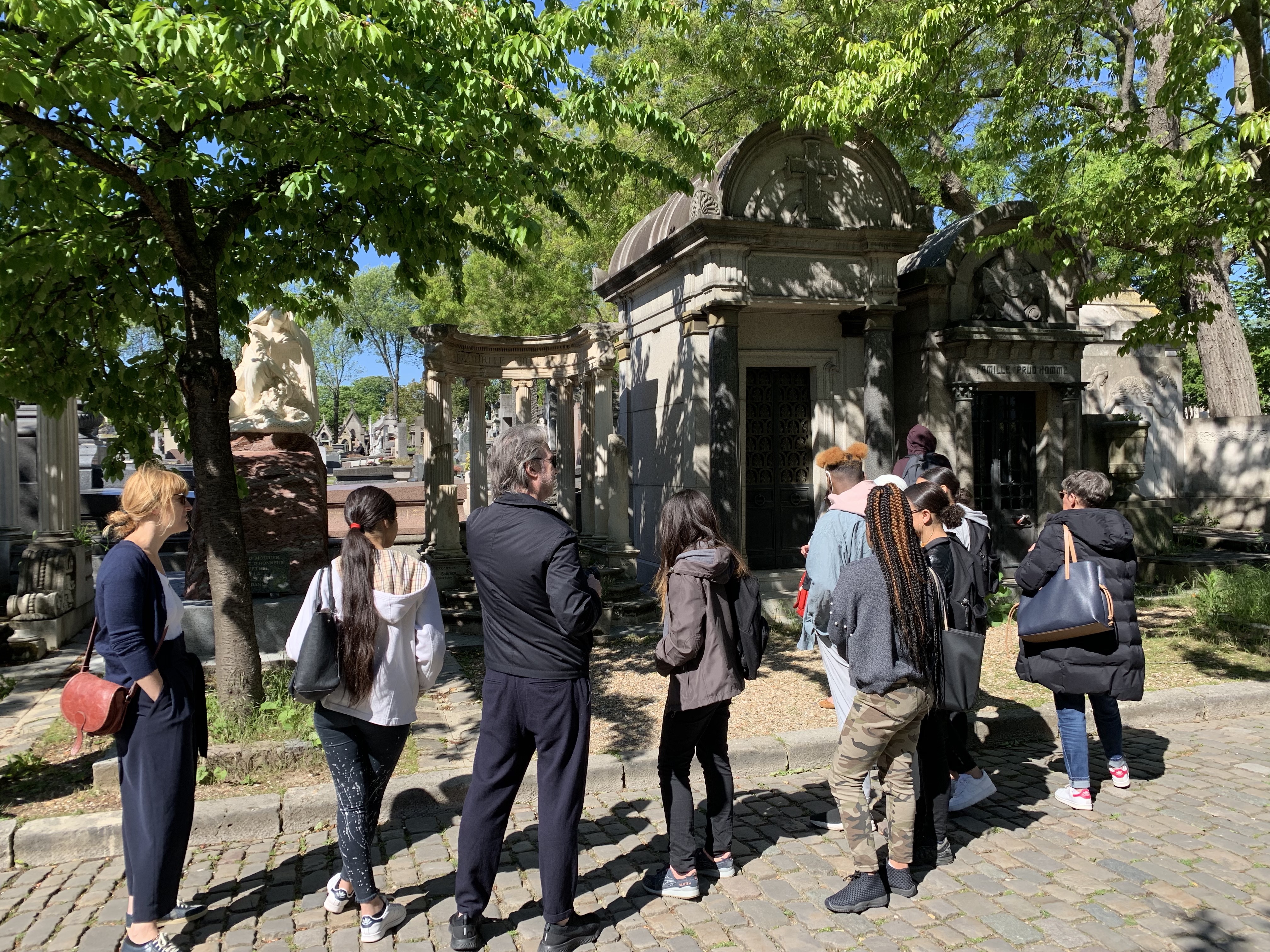 Dans le cadre de la résidence littéraire à la librairie le Monte-en-l’air, nous sommes allés, avec les élèves du lycée Martin Nadaud, à la rencontre d’une place mythique de l’Est parisien ; le cimetière du Père-Lachaise.