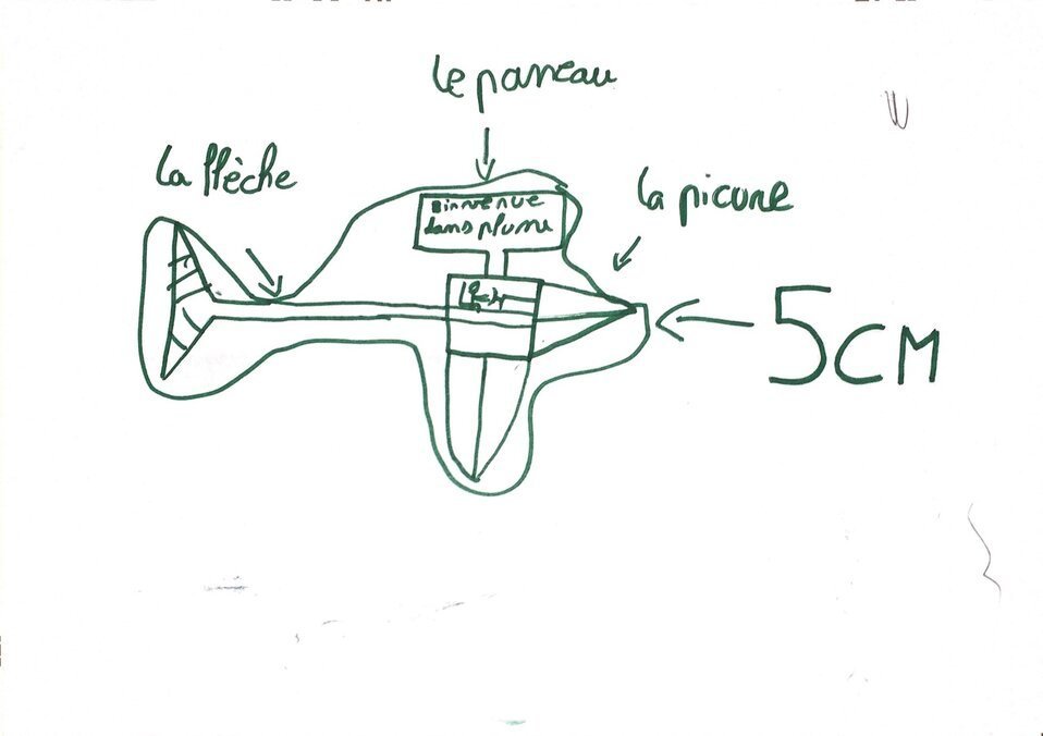 Bill Super Pauvre, Béatrice et Léna devinrent très vite les meilleurs amis du monde. Béatrice construisit une flèche en bois de cinq centimètres. Au bout de cette flèche était fixé un poste de pilotage en métal dans lequel se trouvaient quatre petits bonhommes. Le premier, Mahmoud, était un brocoli, Mimosa le cerveau de l’équipe était un fromage, Rania était une carotte stressée qui avait tout le temps peur et Banana une banane très gourmande et toujours prête. Ces bonhommes étaient magiques, mangeables, ils pouvaient ressusciter, se transformer en petits riquiquis ou devenir géants.