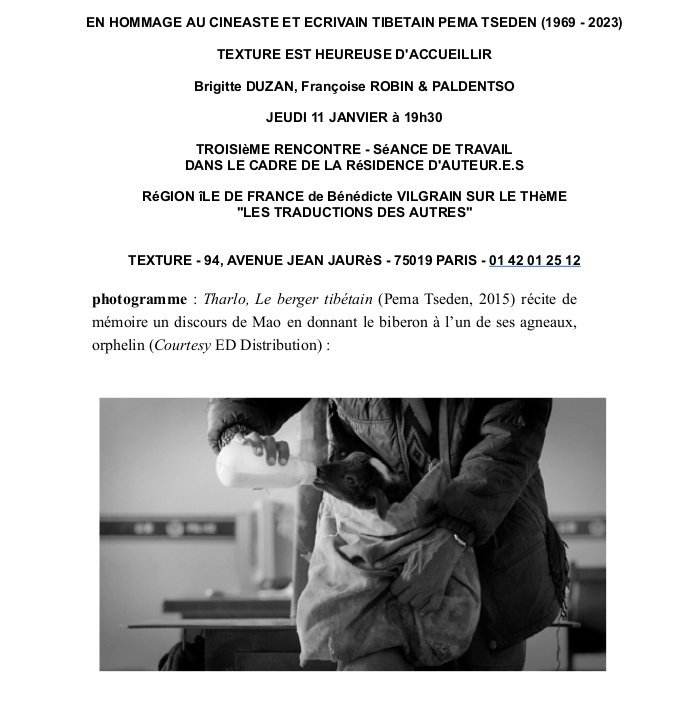 Auditeur.rice.s de ce discours du Président Mao daté du 8 septembre 1944, psalmodié de mémoire en chinois par le berger tibétain Tharlo au début (et à la fin) du film de Pema Tseden, gageons que l’amour d’un peuple se loge moins dans les armes que dans une caméra ; et reconnaissons que la mort, en mai 2023, sur un tournage qui n’était pas le sien, du cinéaste Pema Tseden né en Amdo [Qinghai] en 1969, pèse plus que le Mont Tai. Si quelqu’un meurt au village, honorons-le ! En compagnie de ses traductrices :